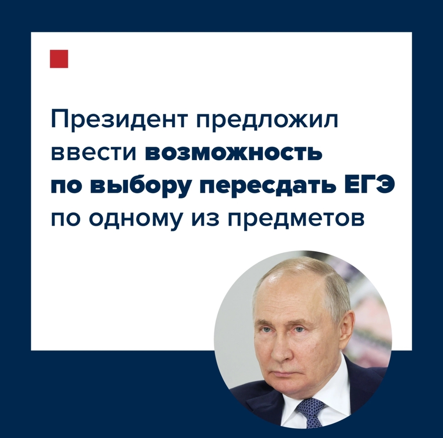 «Предлагаю дать выпускникам второй шанс — а именно: по выбору самого ученика пересдать один из предметов ЕГЭ», — сказал глава государства во время послания Федеральному собранию."