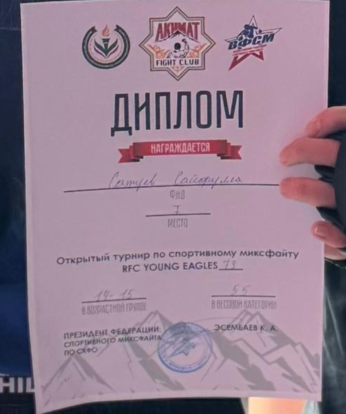 Ученик 8 А класса Сатуев Сайфулла занял первое место в открытом турнире по спортивному миксфайту RFC YOUNG EAGLES.