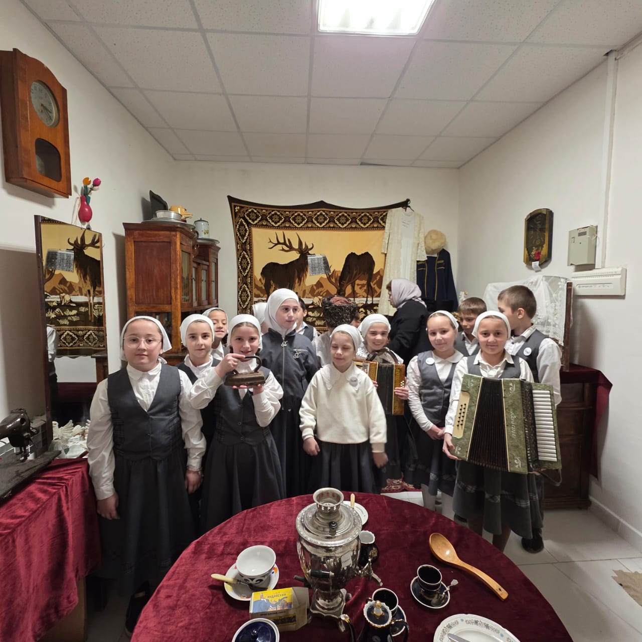 Шахидова Э.М., классный руководитель 3А класса, знакомит своих воспитанников с предметами быта, одежды наших бабушек и дедушек. Дети познают мир, который был привычным для чеченцев. Было трудно, но дружно. Детям передается информация о жизни чеченского народа, который на протяжении веков сохраняет традиции, свой язык.